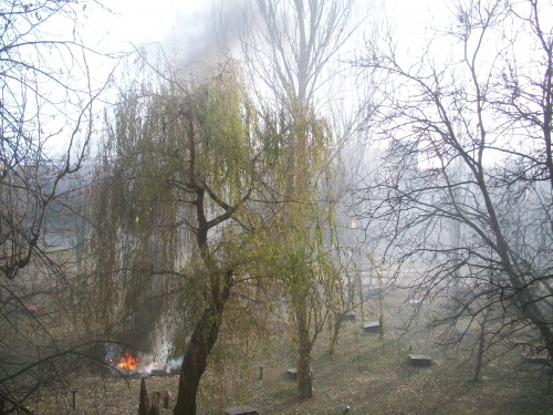 Жовтневый район- и с самого утра у нас дымовая завеса.... Дворники собрали листья в огромную яму от старого погреба и подожгли!