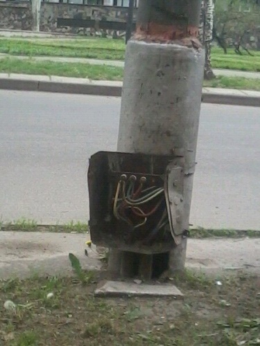 Благоустрой города на "высшем уровне"! Не раз видел столбы с вот такими открытыми электрощитками у нас в городе, в этот раз решил сфотографировать и отправить Вам, дорогой Первый криворожский. Мне интересно на сколько это опасно? Ведь возле таких вот щитовых часто гуляют люди с детьми, с домашними любимцами...