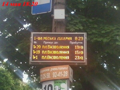 Когда уже информационные табло на троллейбусных остановках будут работать исправно? Не раз замечал что на 95 квартале, на остановке возле маг.Антошка информ.табло зависло. А табло на ост. Первая городская больница почти никогда не работало правильно. Починят, день два и оно снова висит.
