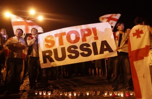 10 августа в 5:45 русские самолёты вторглись в грузинское воздушное пространство из Дагестана и сбросили три бомбы на самолётный завод в Тбилиси. До зубов вооруженные русские «миротворцы» в количестве 6000 человек входят в Грузию через Рокский туннель: 90 танков, 150 бронетранспортёров, 250 артиллерийских самоходок. 4000 русских военнослужащих из Севастополя высаживаются в Очамчирском порту в Абхазии. Интересно, что перебросившие их корабли по заверениям российских военных якобы не должны были идти в грузинские территориальные воды, но заявленный украинской стороне курс движения этих кораблей оказался враньем (или, выражаясь языком «миротворцев», «по дороге изменился»). Обманутыми оказались не только украинцы: например, по предложению французского президента Саркози принимается решение вывести из Цхинвальского региона российские войска, но это решение просто не выполняется. В ответ на лживые дипломатические маневры Москвы Киев вводит разрешительный порядок пересечения украинской морской границы. Российский МИД делает истеричные заявления по этому поводу, слово в слово повторяя инсинуации террориста Кокойты – впрочем, совершенно безрезультатно. В Совете Безопасности ООН представитель России отвечает положительно на вопрос о том, является ли целью вторжения в Грузию насильственное свержение демократически избранного Президента Саакашвили.