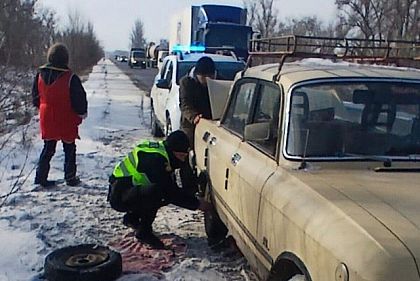 У Криворізькому районі поліцейські виручили водія з пошкодженим колесом