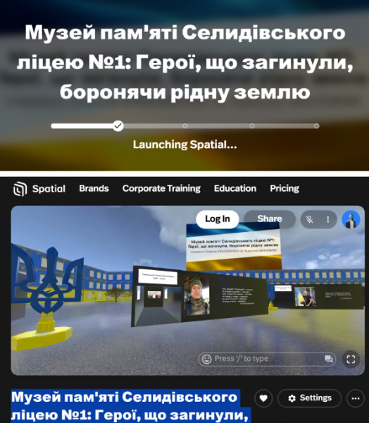 Скриншоти проєкту «Музей пам’яті Селидівського ліцею №1: Герої, що загинули, боронячи рідну землю»