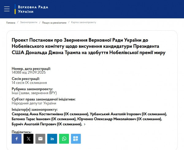 Наразі проєкт передали на розгляд керівництву парламенту.