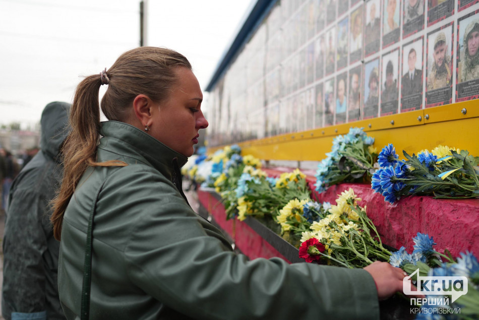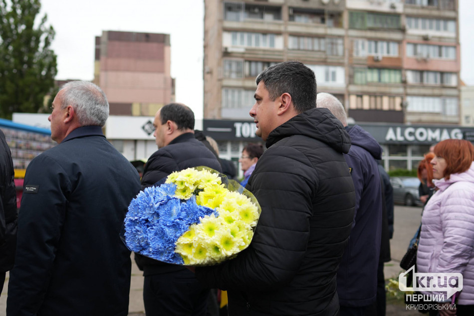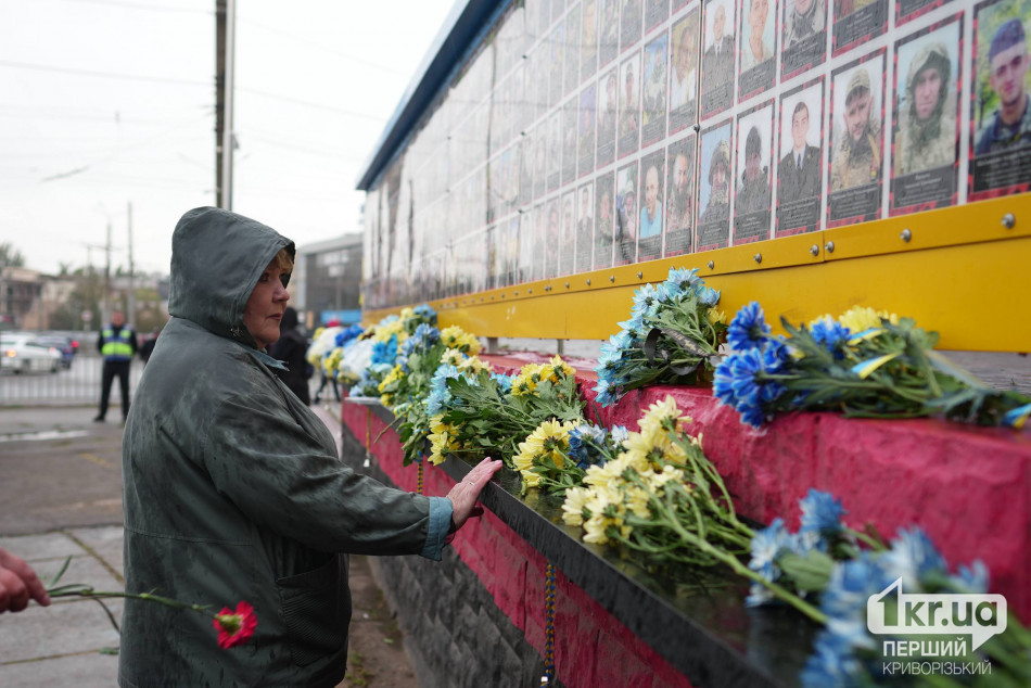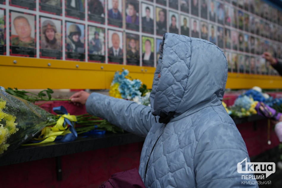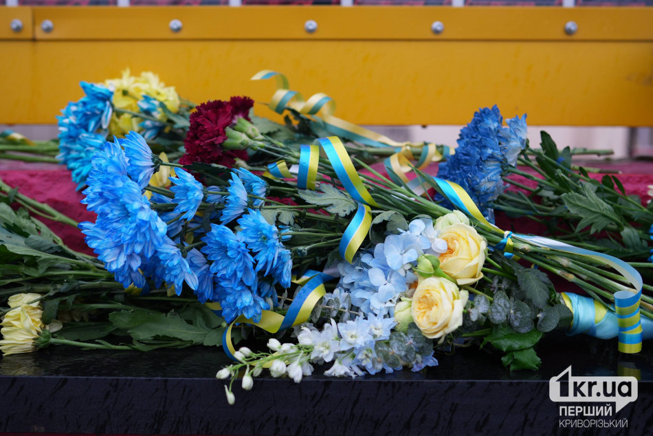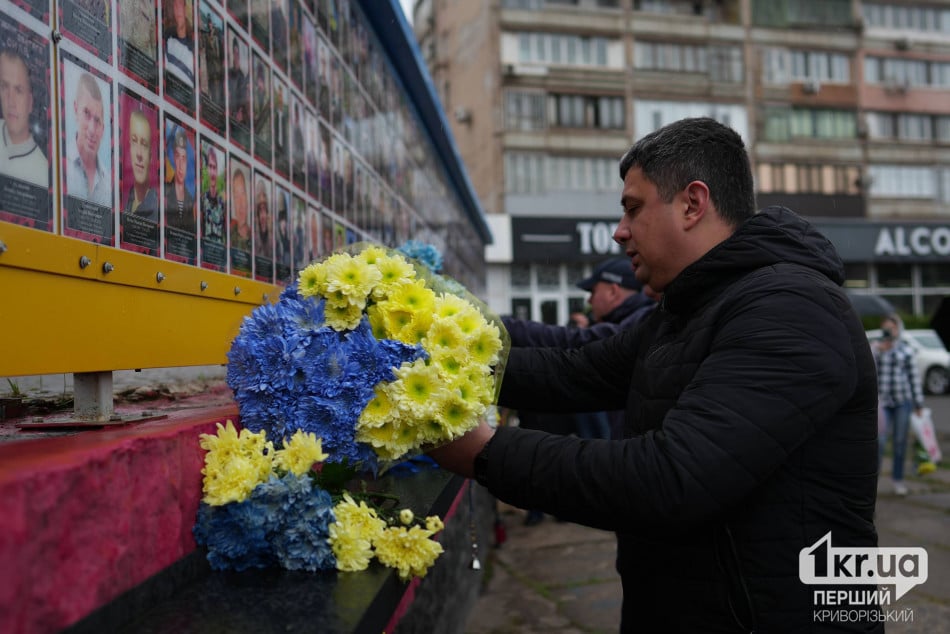 Криворіжці вшанували загиблих хвилиною мовчання, пролунав державний гімн України, потім люди поклали квіти до стели Героїв.