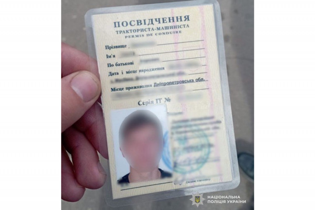 20 жовтня близько 12:50 патрульні зупинили водія трактора. під керуванням 28-річного чоловіка. Під час перевірки документів встановили, що водійське посвідчення 28-річного чоловіка має явні ознаки підробки.