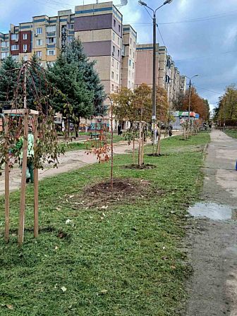 - на 5 мікрорайоні Зарічний (центральна алея) до існуючих плакучих дерев додали 13 плакучої форми берез та червонолистяної яблуні, кулястої вишні.