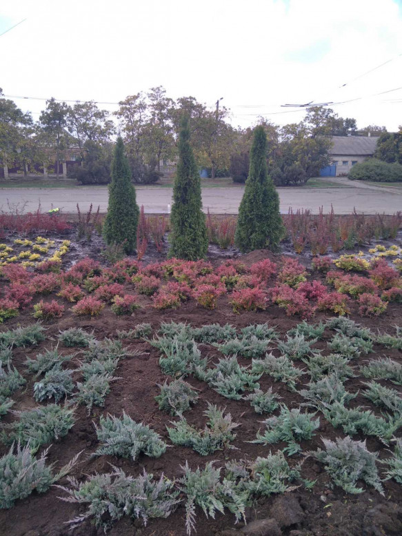 - на площі Козака Шрама (кільце біля зупинки) в Тернівському районі створили ландшафтну композицію з 9 туй західної «Смарагд», карликових форм ялини звичайної «Нідіформіс» та сосни гірської «Пуміліо», а також 1 115 хвойних та листяних чагарників з різноманітним забарвленням: ялівці, барбариси розлогі, пірамідальні та кулясті, спірея японська;