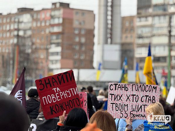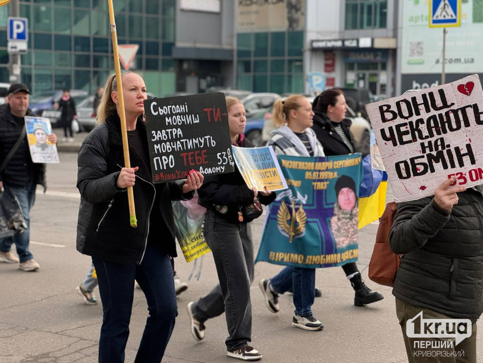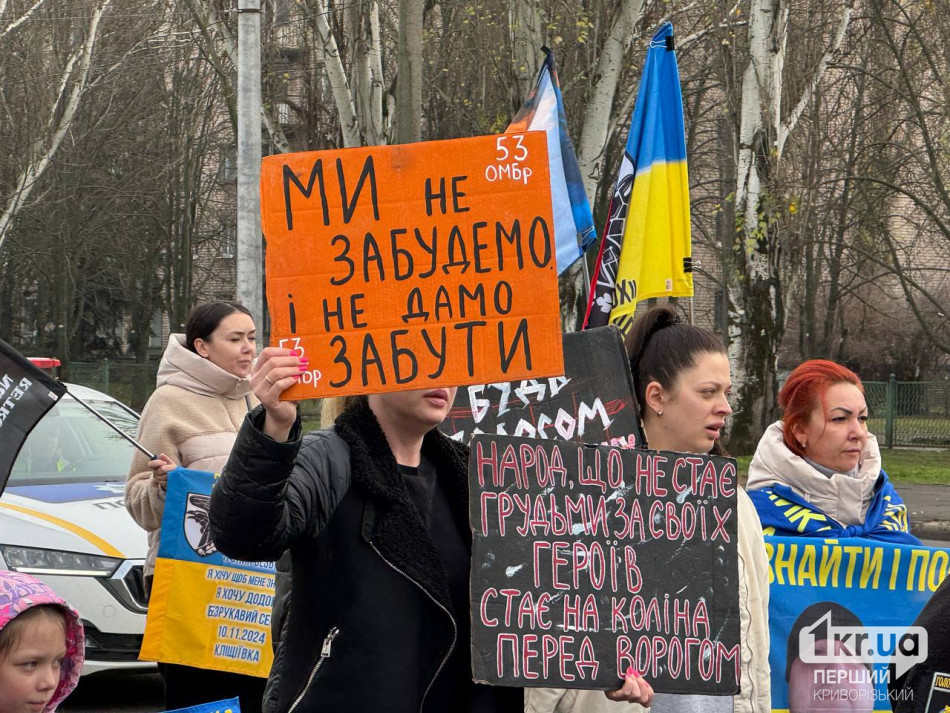 Криворожанка Катерина розповіла, що близька їй людина служила у 93-й окремій механізованій бригаді «Холодний Яр» і вже півтора року вважається зниклою безвісти. За її словами, майже всі родини бійців цього підрозділу, які сьогодні прийшли на акцію, чекають на своїх рідних понад рік.