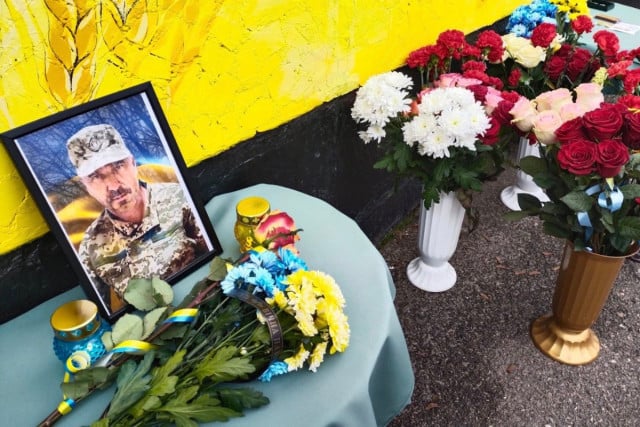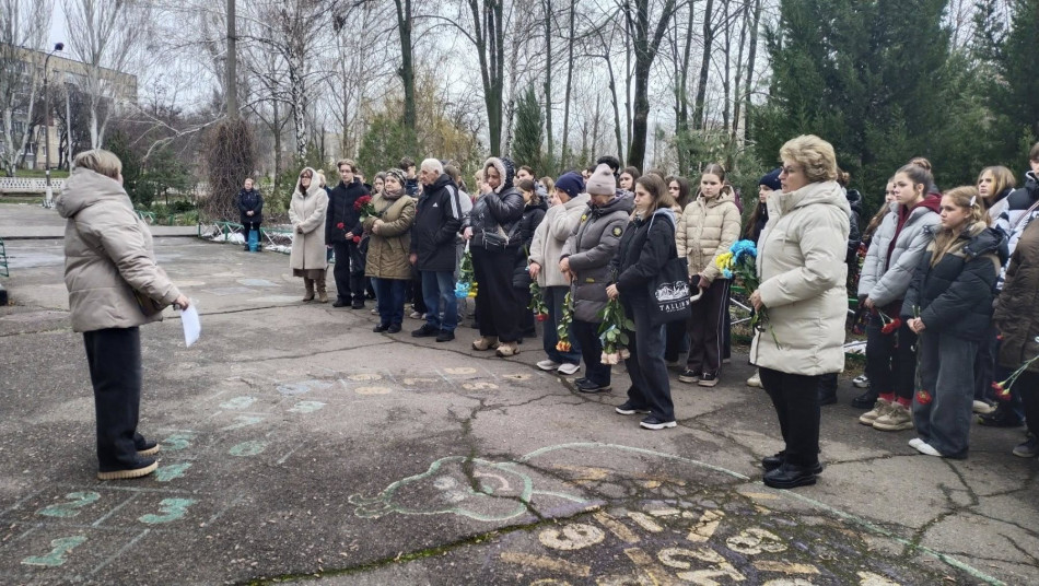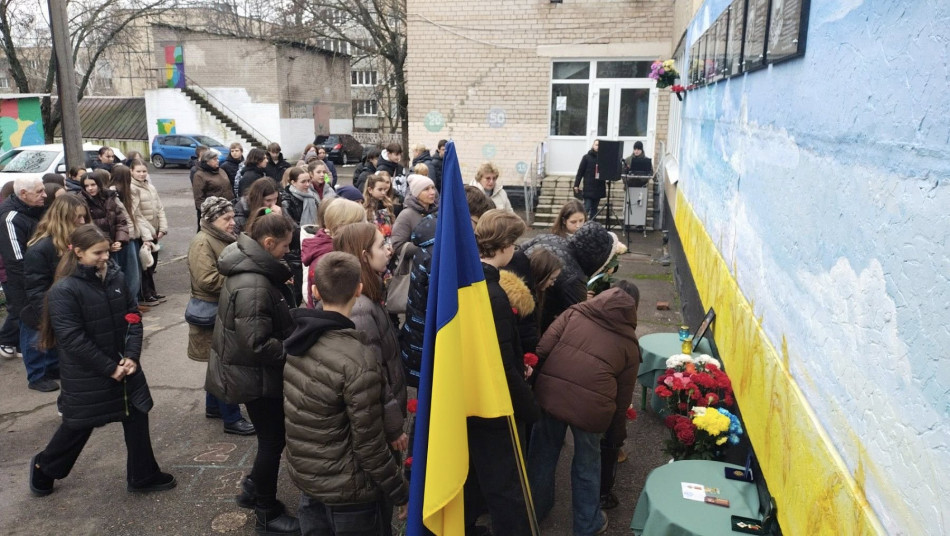 На подвір’ї навчального закладу зібралися рідні загиблого, вчителі та учні й небайдужі містяни. Вони вшанували пам’ять героя хвилиною мовчання і поклали квіти.