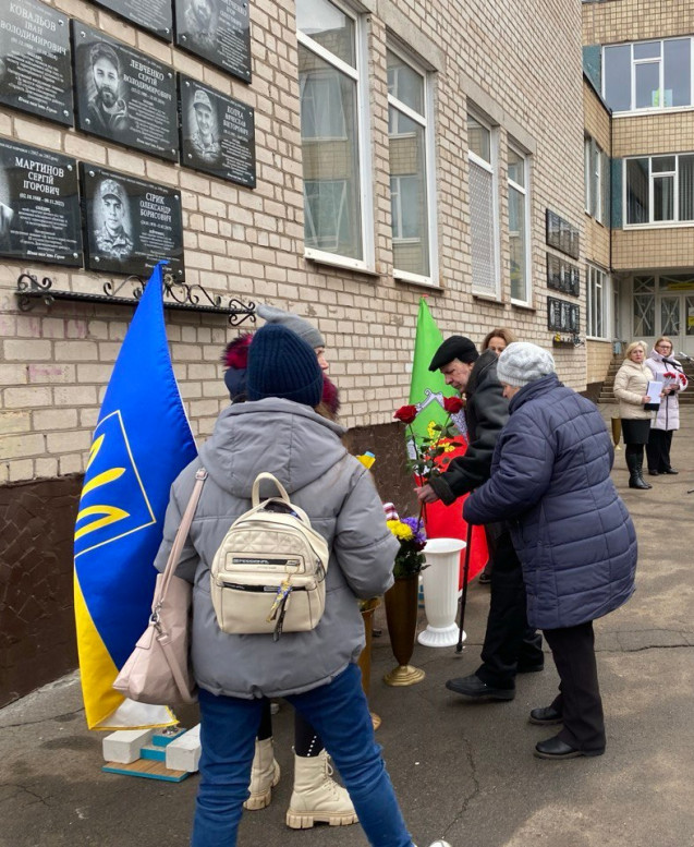 На фасаді навчального закладу в Довгинцівському районі Кривого Рогу відкрили меморіальні дошки на честь загиблих випускників закладу Олександра Борисовича Сірика та Сергія Ігоровича Мартинова.