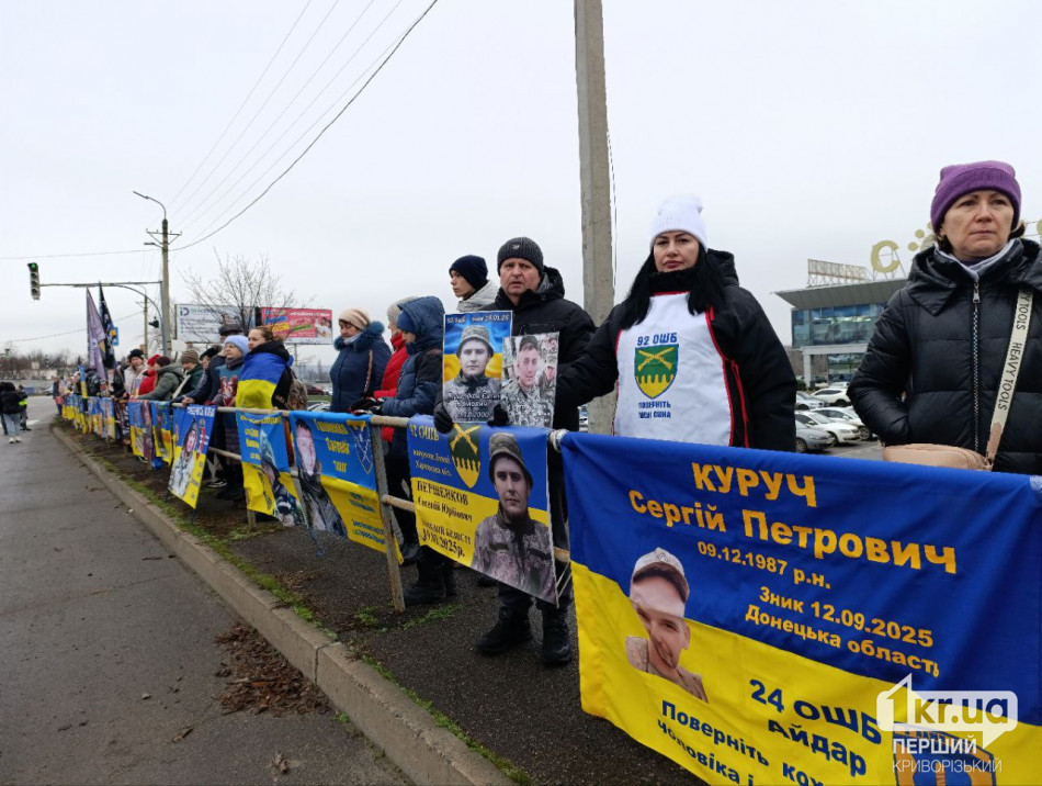 20 грудня у Кривому Розі відбулася мирна акція на підтримку українських військовополонених та зниклих безвісти захисників. Криворіжці зібралися вздовж проїжджої частини біля ТРК Сонячна Галерея, щоб привернути увагу громадськості до долі військових, які перебувають у полоні або вважаються зниклими безвісти.