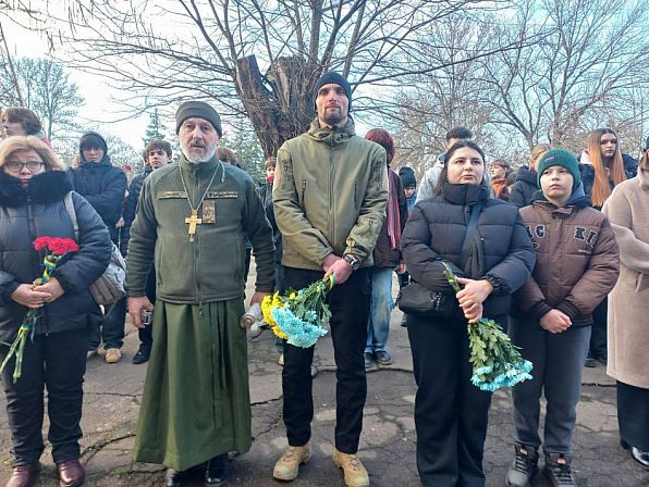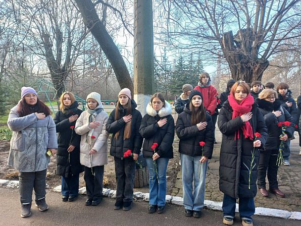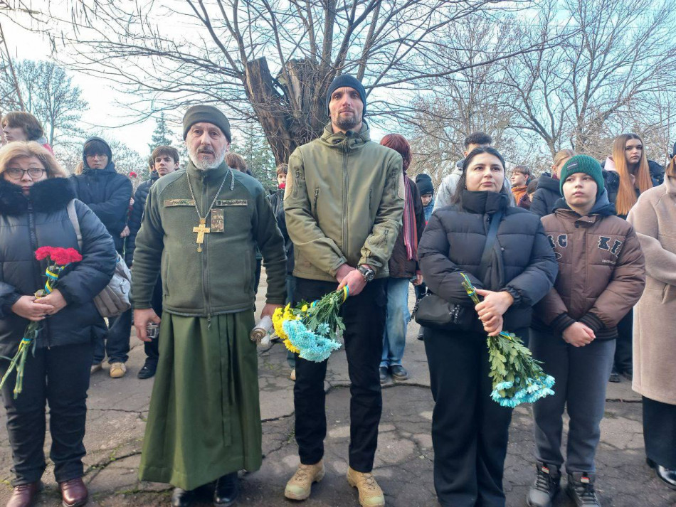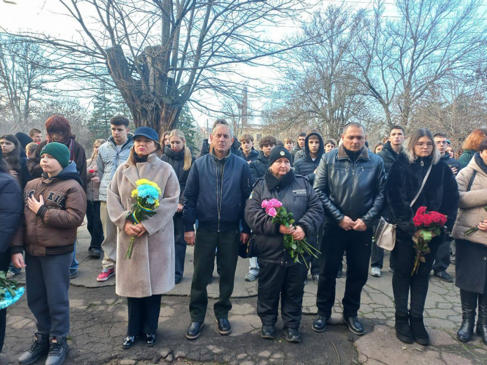 Перед освітнім закладом зібралися рідні військовослужбовців, учні, педагоги, представники духовенства та небайдужі мешканці громади. Присутні на заході вшанували пам’ять полеглих покладанням квітів та хвилиною мовчання.