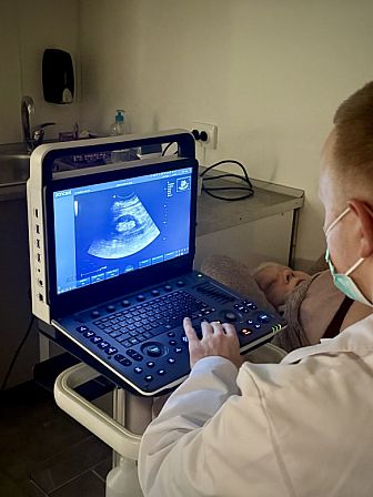 Мобільна клініка — це переобладнаний напівпричіп із трьома повноцінними кабінетами для прийому лікарів, автономним генератором, запасом води, доступом до інтернету та мобільною лабораторією. В одному місці пацієнти можуть отримати консультації терапевта й вузькопрофільних спеціалістів, пройти обстеження та одразу отримати призначені ліки — безкоштовно.
