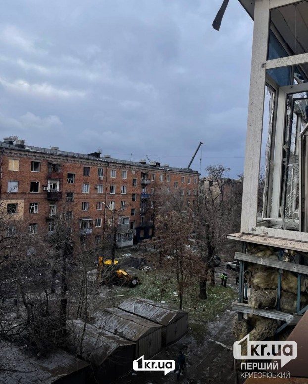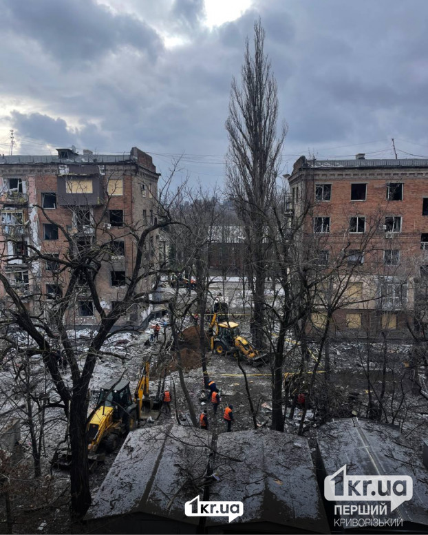 Уранці 9 січня у Кривому Розі триває ліквідація наслідків ударів балістичними ракетами РФ, завданих по місту 8 січня.