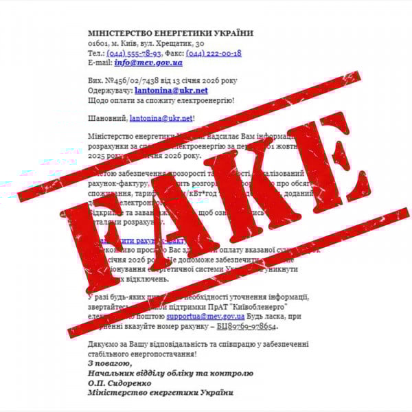 Листи містять заклики до оплати та вкладені файли або посилання для їх завантаження. У Міненерго повідомляють, що не здійснюють таких розсилок.