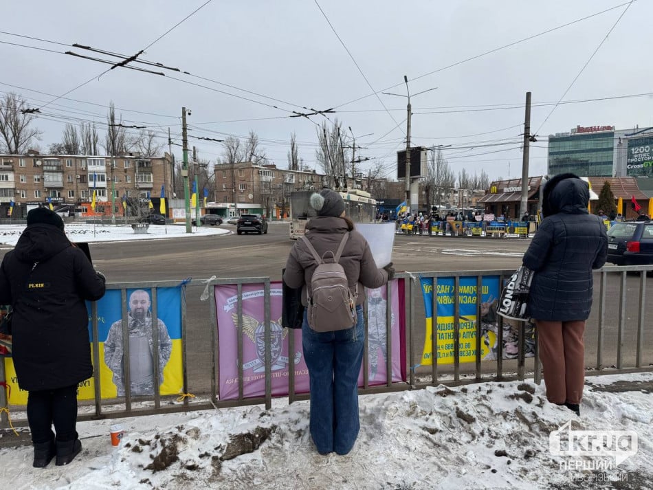 Рідні, друзі військових та інші небайдужі криворіжці вишикувалися вздовж проїзної частини. В руках людей можна було побачити плакати, прапори, фото захисників.
