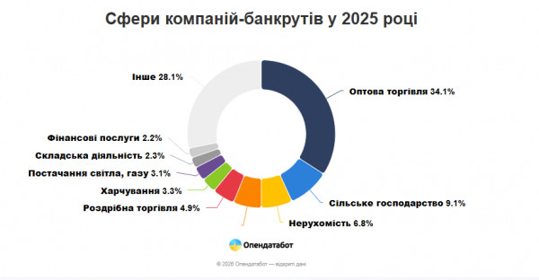 Найчастіше банкрутують товариства з обмеженою відповідальністю (ТОВ) — це 84% випадків у 2025 році.