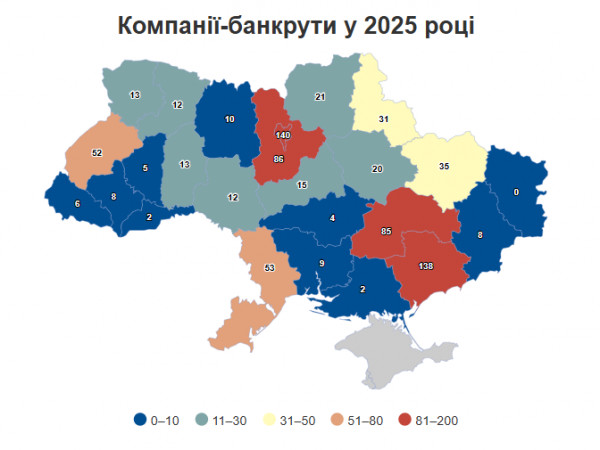 У 2025 році процедуру банкрутства розпочали 780 компаній. Це лише 10% від загальної кількості припинень бізнесів. Переважно, компанії в Україні проходять через процедуру самостійного припинення — це 60% випадків.