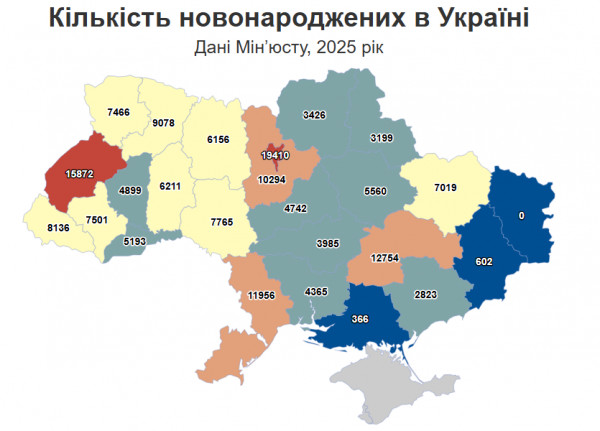 У 2025 році в Україні зафіксували 168 778 новонароджених. Після кризового 2022 року, коли народжуваність скоротилася на 25%, зниження поступово сповільнюється: у 2024 році воно становило 6%, у 2025 році — 4,5%.