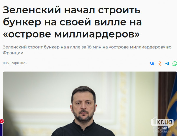 Інший приклад відвертої брехні про любов президента до бункерів: російська пропаганда поширювала відвертий фейк про нібито придбання президентом України «вілли Геббельса» у Німеччині за €8 мільйонів. Джерелом цієї брехні стало повідомлення посольства росії у Південно-Африканській Республіці.