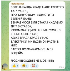 Паралельно з РФ розганяють фейки про нібито втрату контролю, дефіцит товарів, несправедливий розподіл електроенергії — мовляв, «комусь світло включають за якісь "привілеї", а комусь - навмисно ні».
