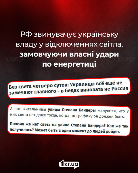 На проросійських сайтах та у телеграм-каналах поширюють серію публікацій, у яких відключення електроенергії подають не як наслідок війни, а як «повний провал влади».