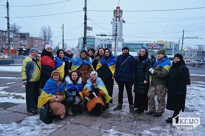Тож учора, 22 січня 2026 року, криворіжці також вийшли на Ходу до Дня Соборності, розуміючи важливість цієї дати, особливо під час російсько-української війни. За традицією, дві групи учасниць із прапорами України вийшли від зупинок «Киянка» та «Стріла». Вони зустрілись посередині, на вулиці Степана Бандери, та далі продовжили рух разом через проспект Університетський до Народної Стели Героїв на 95 кварталі. Рухаючись центральними вулицями міста, учасники Ходи роздавали містянам синьо-жовті прапорці.
