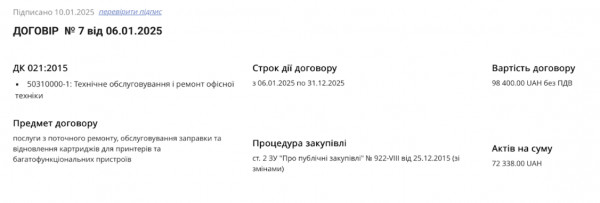 Аналогічний договір між цими ж сторонами укладали і в 2025 році. Сума та ж — 98.4 тисячі гривень.