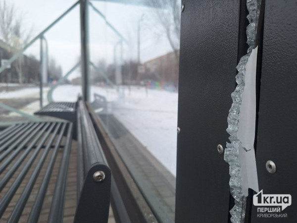 У Кривому Розі на зупинці громадського транспорту потрощили скло