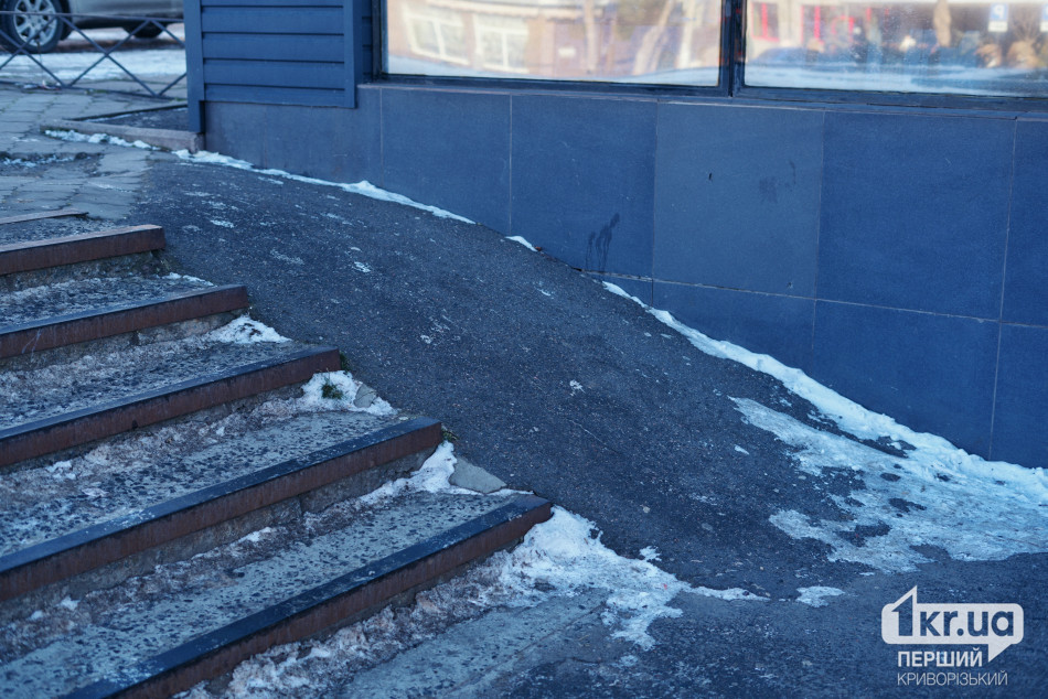 На деяких ділянках, якими прямували журналісти «Першого Криворізького», власне тротуару просто не існує. Тому Олександр змушений пересуватись проїжджою частиною разом з автомобілями. На центральній вулиці Володимира Великого ситуація дещо краща — там працює снігоприбиральна техніка. Але у дворах багатоповерхівок неподалік будинку Олександра доступність фактично відсутня.
