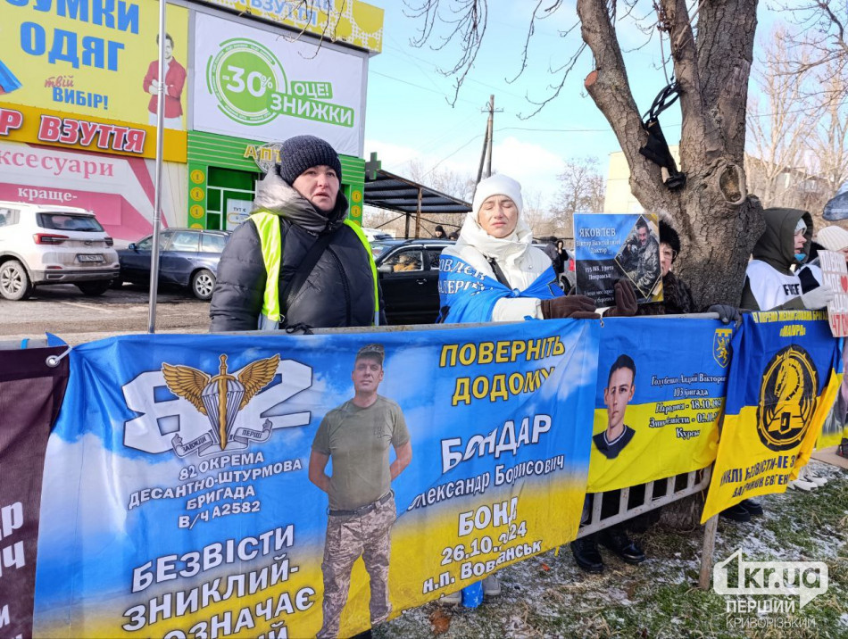 Мирна акція пройшла у мікрорайоні Ювілейний — на вулиці 200-річчя Кривого Рогу. Її учасники вийшли з портретами військовослужбовців, прапорами бойових підрозділів та плакатами з закликами повернути Захисників додому.
