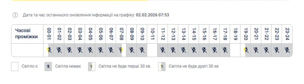 Зранку 2 лютого графік для групи 4.2 оновили, наразі для криворіжців виглядає так: