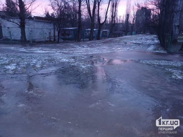 У Кривому Розі через порив труби утворилася ожеледиця на дорозі