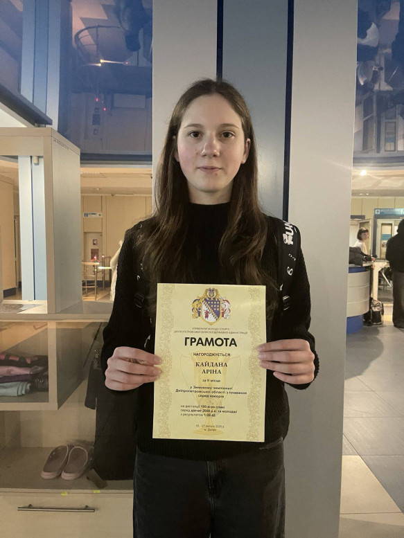 - Аріна Кайдана — ІІ місце серед 2008 року народження — 100 метрів на спині;