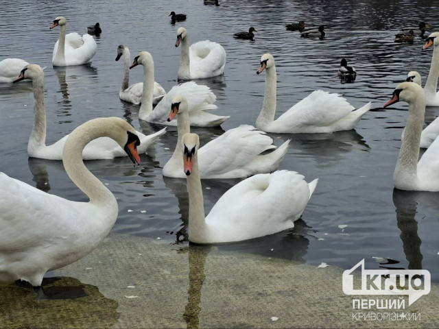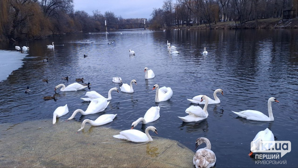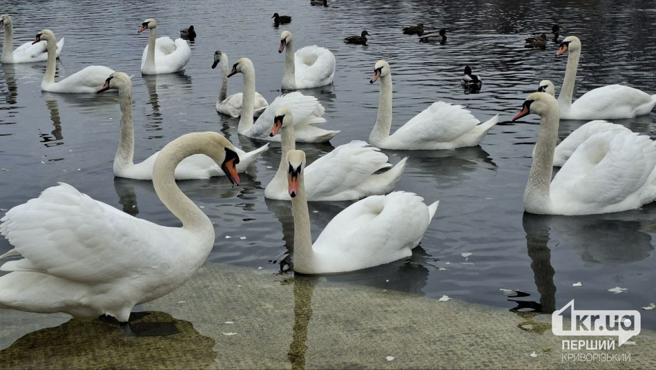 Десятки лебедів у криворізькому парку: фахівці попереджають про особливості годування