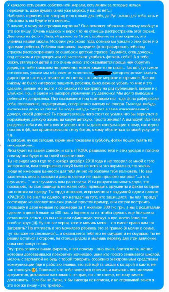 Незважаючи на спроби очорнити його репутацію, Сергій виграв конкурс. Буденна робота і життя школи тривали до весни 2020 року. Тоді школа працювала дистанційно через ковід, вчителі працювали віддалено, і на телефон Плотнікова прийшло повідомлення від соціального педагога. Вона повідомила, що сталося те саме з тією ж дівчиною, тільки тепер фото опублікували в Telegram-каналі та вказали її ім’я і з якої вона школи та надіслала директору скріншот із цими фотографіями.