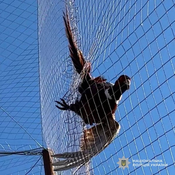 1 березня правоохоронці помітили фазана, який заплутався в захисній сітці вздовж автошляху в одному із сіл Червоногригорівської громади Нікопольського району.
