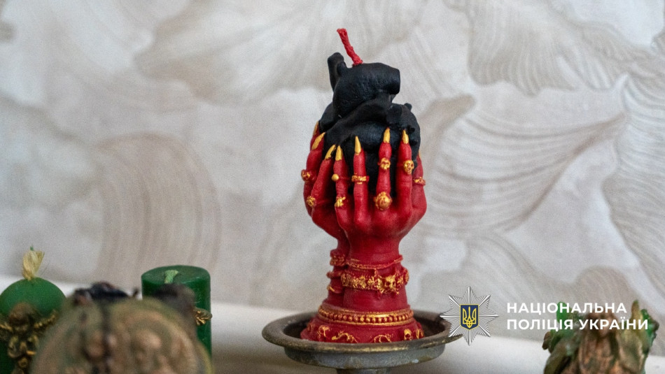 • окультні матеріали й обрядову атрибутику, а також візитівки ясновидиць.