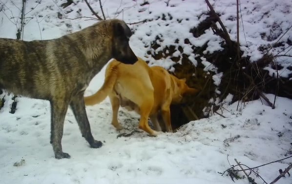Також у кадр регулярно потрапляє зграя безпритульних собак — приблизно вісім тварин. Вони майже щодня пробігають повз нору вранці та ввечері й часто намагаються зазирнути всередину.