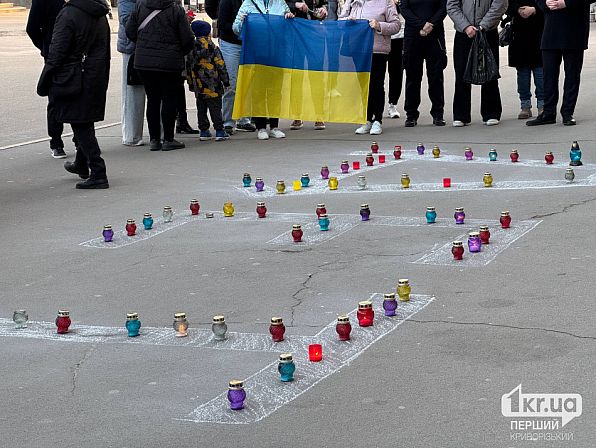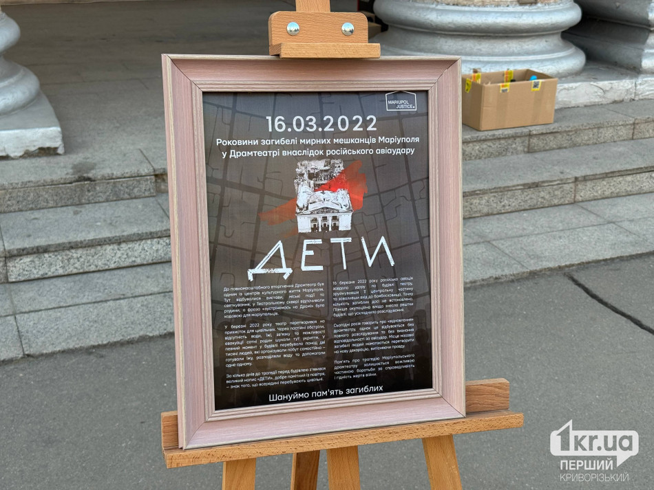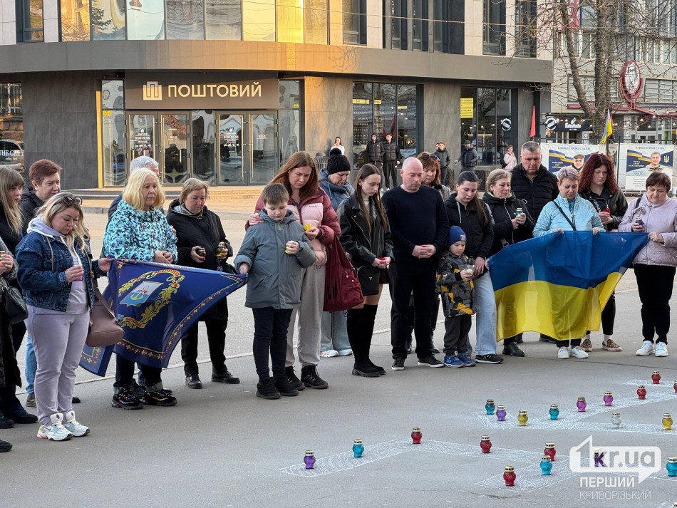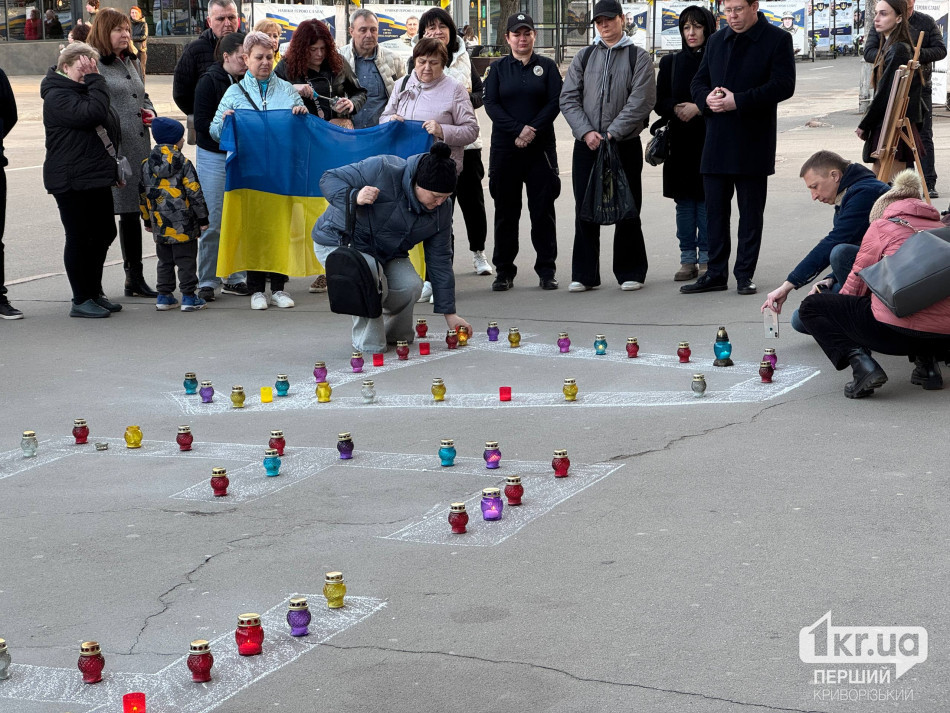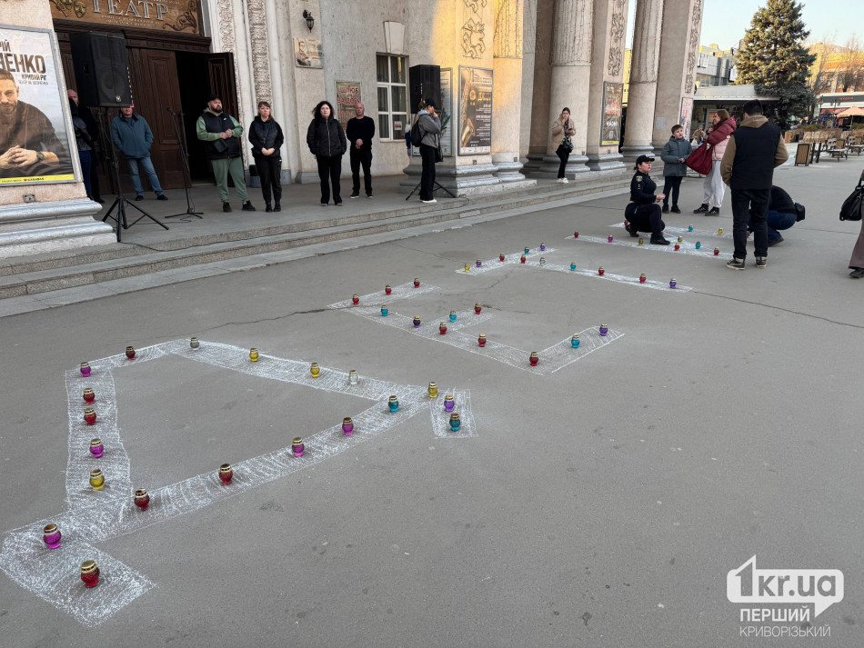 У Кривому Розі сьогодні, 14 березня, відбулася тиха акція до роковин трагедії Маріупольського драматичного театру, який російські війська знищили авіаударом у березні 2022 року.