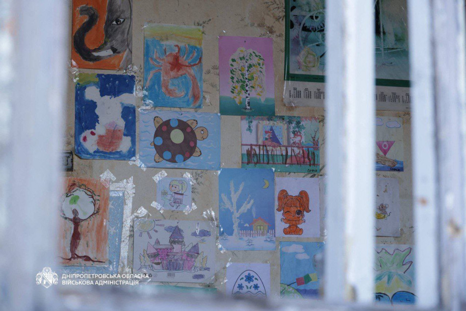Крім того, кадри з квартир показують дитячі малюнки на стінах і пошкоджені вікна, що свідчить про те, що удар прийшовся по житловому району.