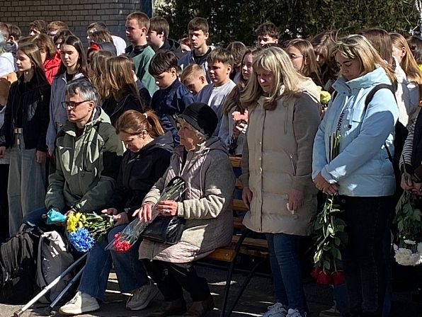 Перед закладом освіти зібралися рідні військовослужбовців, учні, педагоги, духовенство та небайдужі мешканці. Присутні на заході вшанували пам’ять полеглих покладанням квітів та хвилиною мовчання.