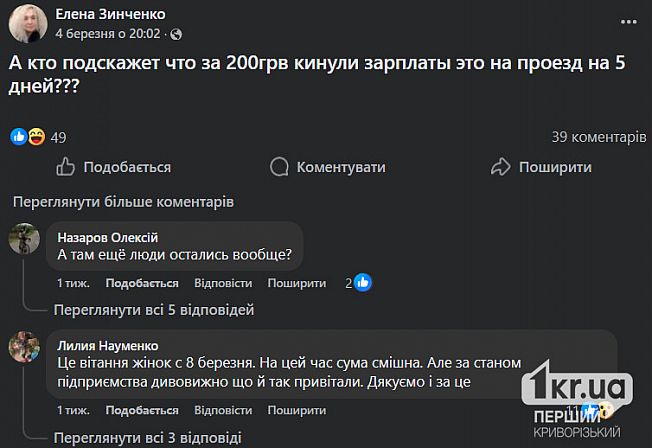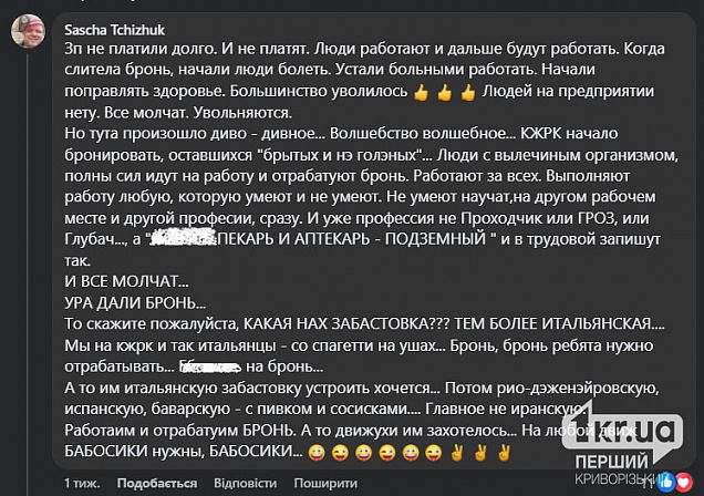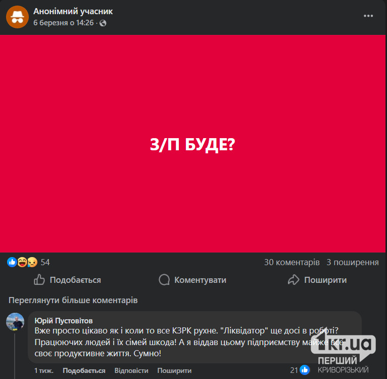 Редакція «Першого Криворізького» також звернулася за коментарем до керівництва підприємства, та на момент публікації новини відповіді не отримали.