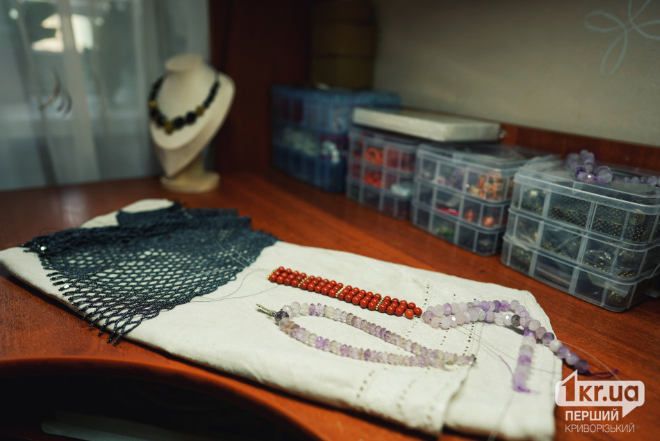 «Бісер дозволяє створювати деталізовані й тендітні прикраси, а каміння додає виробам особливої енергетики та стає своєрідним оберегом для своєї власниці».Час створення прикрас залежить від складності виробу та натхнення. Іноді за день може з’явитися кілька виробів, а інколи робота над одним намистом триває до двох тижнів.
