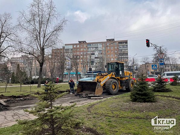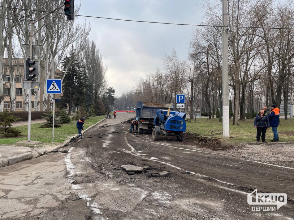 Біля одного з виконкомів Кривого Рогу ремонтують дорогу