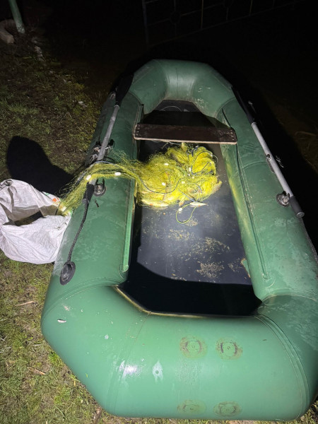 Під час рибоохоронного рейду інспектори виявили містянина, які висловлював водні біоресурси з гумового човна із застосуванням заборонених знарядь лову — сіток.
