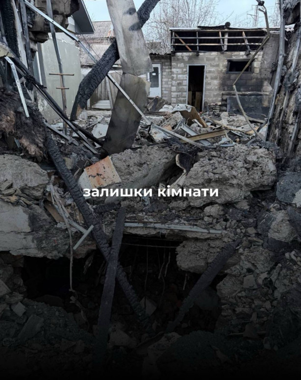 Внаслідок вчорашньої російської атаки на Кривий Ріг один із шахедів, які масовано атакували місто, влетів у приватний будинок у Довгинцівському районі та повністю зруйнував його. Після удару сталася пожежа — оселя вигоріла вщент.