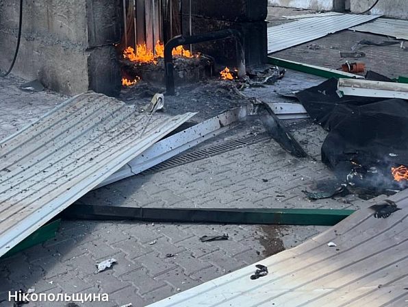 Найбільше ударів припало на Нікопольський район. Там обстрілювали дронами та артилерією райцентр, Марганецьку, Покровську сільську та Червоногригорівську громади. Ворожа армія вдарила FPV-дроном по цивільному автомобілю в Нікополі. Загинув чоловік, 60-річна жінка перебуває у важкому стані. Внаслідок обстрілів виникли пожежі. Пошкоджені дві багатоповерхівки та 4 приватні будинки, 5 господарських споруд, дитячий садок, 9 автівок, пожежне депо, дві автозаправні станції, магазин і підприємство.