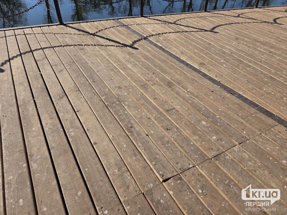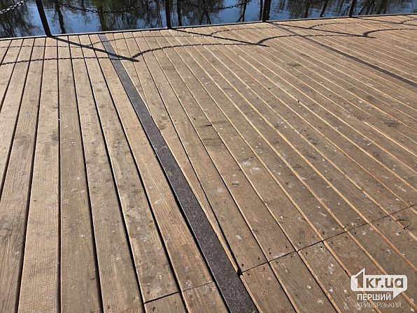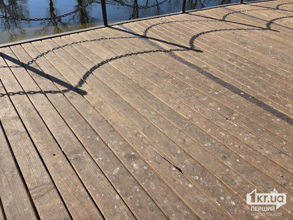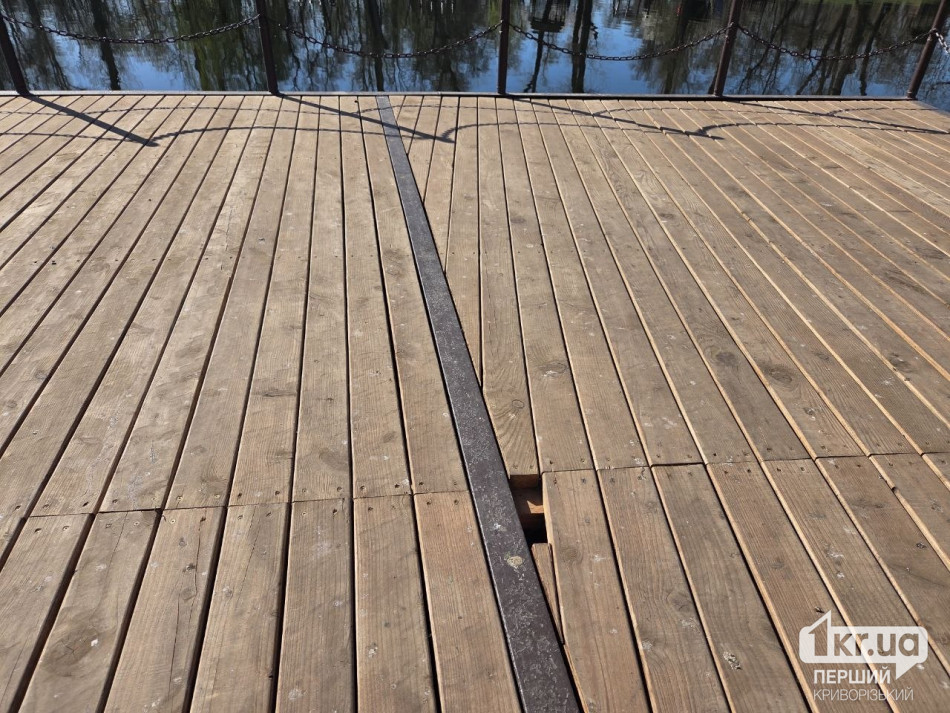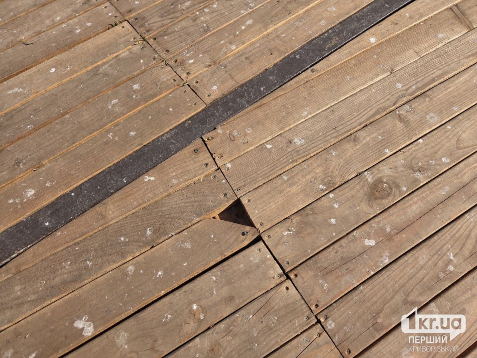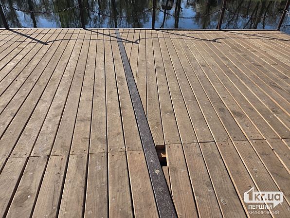 Зараз на пірсі місцями видно розходження швів і перекоси. На стику з бетонною частиною є велика щілина. Також дошки вже нерівні.