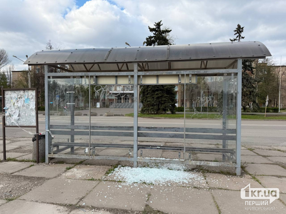Вандалізм біля цирку: у Кривому Розі невідомі потрощили зупинку громадського транспорту